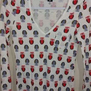 BDG LADIES LONG SLEEVE THERMAL OWL PRINT TOP size M