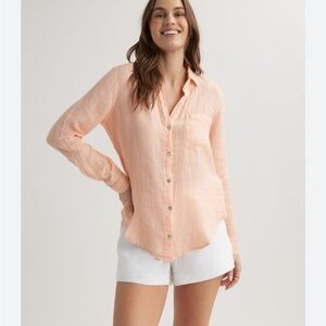 BDG Light Peach Pink Sheer Long Sleeve Button Down Shirt Women’s Size Small