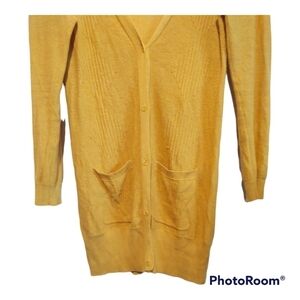 BDG. Long dark yellow button front sweater women's medium front pockets