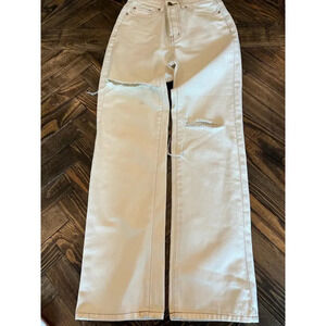 BDG Loose Straight Jeans Off White Distress Women 25 Western Fringe Boho Grunge