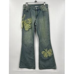 BDG Low-Rise Flare Butterfly Applique Denim Blue Jeans Size 25