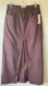 Distressed bottom edge, filled slit in the back, open slit in the front, zipper and button closure. Beautiful, almost dark blush color, something between purple and tan.