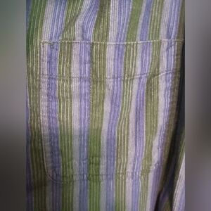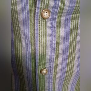 BDG Men's Corduroy Green and Blue Striped Shirt_Large