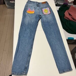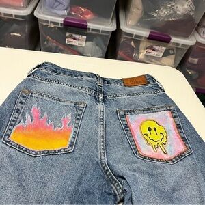 BDG Mom Jeans Hand Painted Smiley Flames 24x32 K2