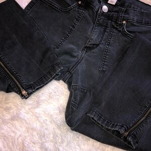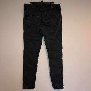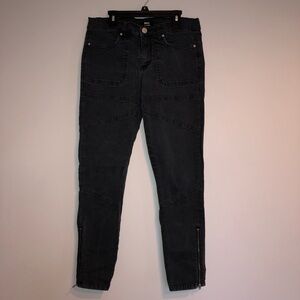 BDG Moto Skinny Ankle Crop Zip High Midrise Patch Dark Indigo Wash Black Fabric Jeans
