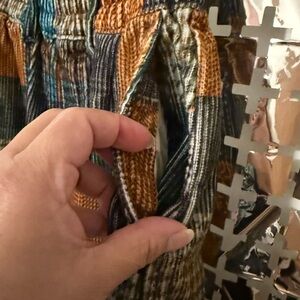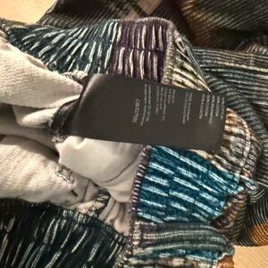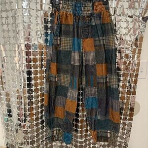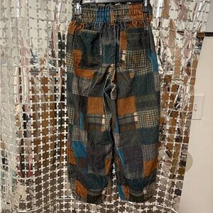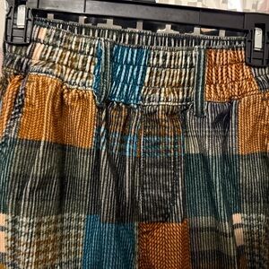 Unique textured pants with a blend of earthy tones. Ideal for a stylish casual outfit.