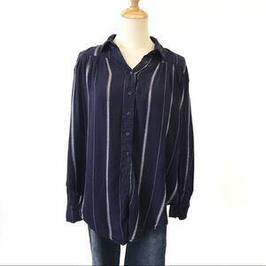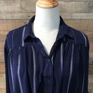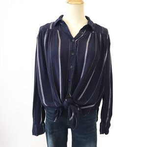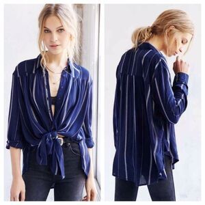 BDG Navy Blue Striped Button Front Shirt Urban Outfitters Tie Front XS