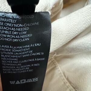 • Size XS • 100% cotton • High waist w/ elastic waistband + button fly • Front + back flap pockets • Straight leg fit • Gently used (small stain on back leg, see pics.