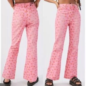 BDG Pink Floral High Rise Flare Leg Jeans Size 29