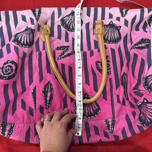 This BDG tote bag showcases a delightful pink and blue color scheme with a nautical-inspired design. Its spacious interior and sturdy construction make it perfect for everyday use or a day at the beach. The playful shell motifs add a touch of whimsy to this stylish accessory.