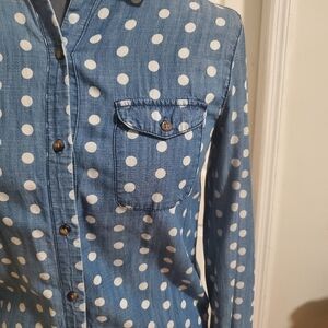 BDG Polka Dot Denim Button Down Shirt Blue and White Size S