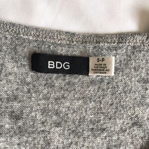 BDG Pullover Sweater Gray Heather Knit Long Sleeve V Neck Size S Hi Lo Pocket