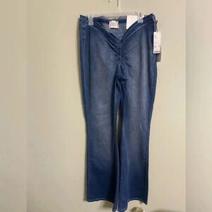 BDG Ruched Dipped V Flare Blue Stretch Jeans NWT Size 34 Urban Outfitters New