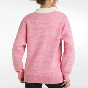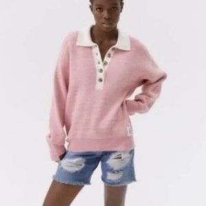 BDG Rugby Sweater Oversized Knit Collard Half Button Bubblegum Pink SZ XS