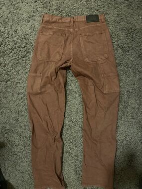BDG slim straight chinos in a warm rust-brown shade. Clean five-pocket design. Durable cotton blend fabric. Easy to style for casual or work looks.