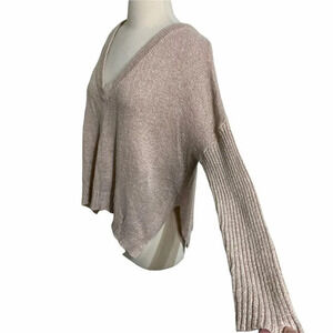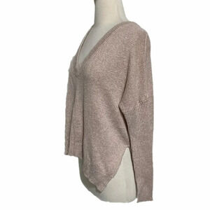 BDG S tan with‎ rose gold metallic threads V-neck sweater