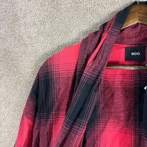 BDG Shacket Cardigan Womens XS Red/Black Plaid Flannel Oversized Fit Open Front