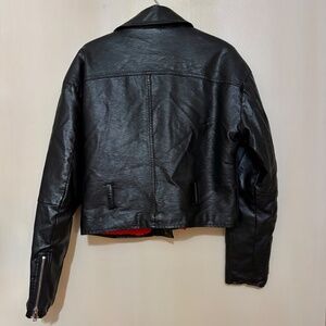 BDG Sherpa Lined Collared Crop Faux Leather Jacket Black Red Womens Size Medium