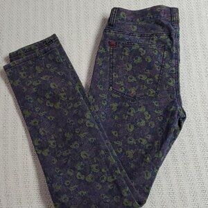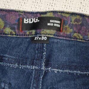 BDG Skinny Mid Rise Sz. 27 x 30 Colorful Floral Blue Jeans with Pockets