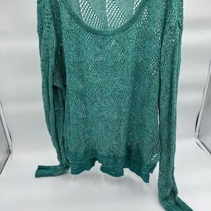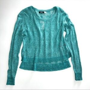 Cute turquoise hi-low BGD by Urban Outfitters sweater. Sheer throughout Long sleeve