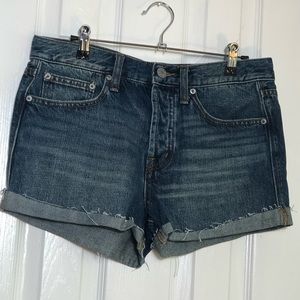 BDG TOMGIRL Mid-Rise Raw Hem Jean Shorts