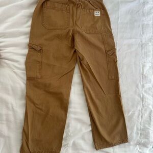Versatile tan cargo pants with multiple pockets. Ideal for everyday wear.