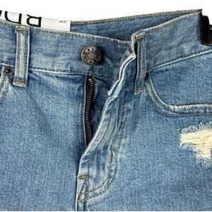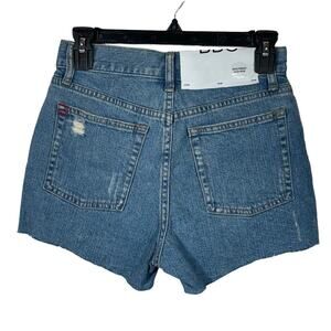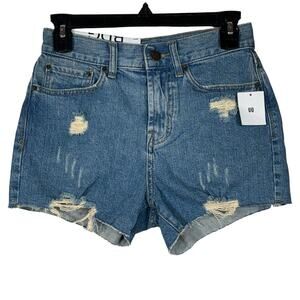 BDG UO SZ 25W Girlfriend Jean Shorts Hi-Rise Zip-Fly Distressed Frayed Hem Blue