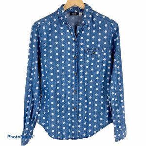 BDG URBAN OUTFITTERS Long-Sleeve Chambray Polka Dot Button-Down Denim Shirt Small