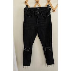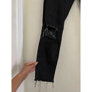BDG Urban Outfitter Jeans Women's 26 Crop Twig High Rise Black Cut Out Raw Hem