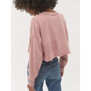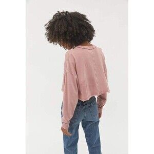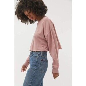 BDG Urban Outfitters Astrid Oversized Long Sleeve Cropped Tee Top Pink S 258597