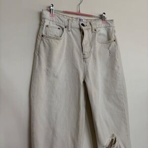 BDG Urban Outfitters Authentic High Waist Ripped Distressed Straight Leg Jeans in Ecru Beige Color and Womens US Pant Size 29 x 32. Gently used and in excellent condition.