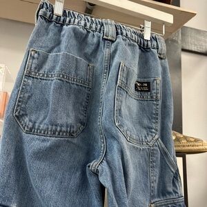 Trendy and functional, these BDG by Urban Outfitters cargo jeans are a wardrobe staple. Featuring a relaxed βSkateβ fit with an elastic waistband and multiple utility pockets, these jeans offer comfort with edge. Light to medium blue wash, high rise, and straight leg.