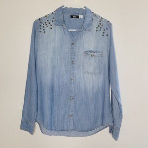BDG Urban Outfitters Chambray Shirt Blue Size Small Studded Button-Down Western