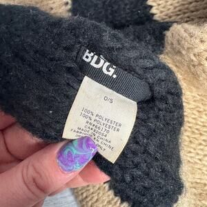 Soft and cozy BDG by Urban Outfitters infinity scarf featuring bold black and tan stripes in a chunky knit design. Adds instant warmth and texture to any fall or winter outfit.