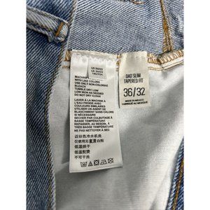 Elevate your casual style with these BDG Urban Outfitters Dad Slim Tapered Fit jeans. The light wash and distressed details add a touch of edginess to your outfit, while the 5-pocket design and easy care features make them practical for everyday wear. The jeans are made with 100% cotton denim fabric, with a waist size of 36 inches and a 29-inch inseam.