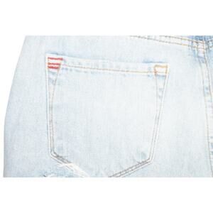 Channel laid-back vibes with these BDG Urban Outfitters light wash mom jeans. Featuring heavy distressing on the front, a high-rise fit, and a relaxed tapered leg, they bring that perfect vintage look. Designed with a classic five-pocket style and zip fly. Subtle red stripe detail on the back pocket adds a signature BDG touch.