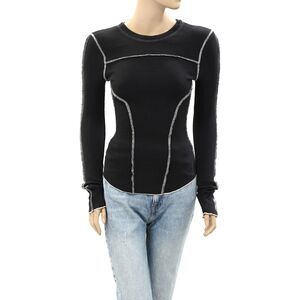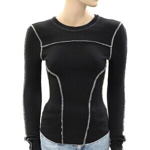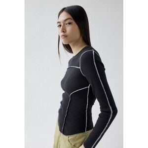 BDG Urban Outfitters Emme Thermal Seamed Blouse Top Black Long Sleeve S 269350
