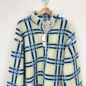 BDG Urban Outfitters Fleece Quarter Zip Jacket Faux Fur Oversized Medium NWT