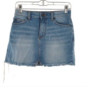 BDG Urban Outfitters Fringe Raw Hem Medium Wash Blue Denim Skirt Sz Extra Small.