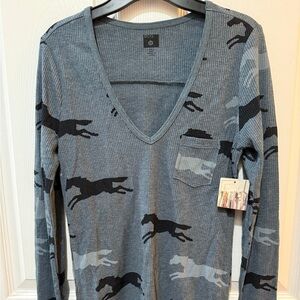 BDG Urban Outfitters Gray V-Neck Long Sleeve with Equestrian Horse Pattern