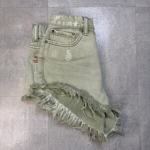 BDG Urban Outfitters Green High Rise Cheeky Shorts Womens 28 Distressed Frayed