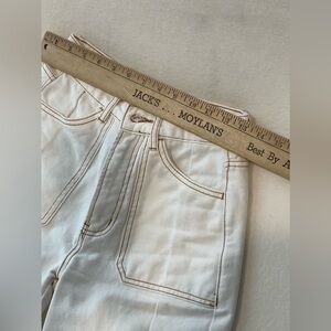 BDG Urban Outfitters High Rise Baggy Cargo Denim Jeans. Off white color with gold color stitching.