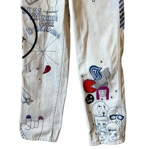 BDG Urban Outfitters High Rise Ivory Doodle Carpenter Jeans