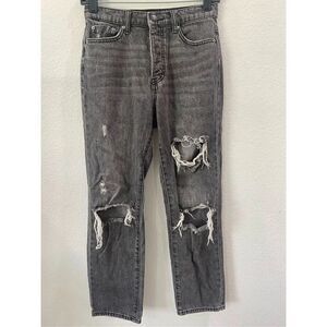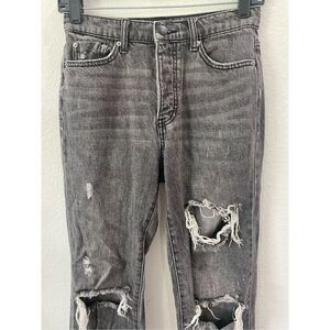 BDG Urban Outfitters High Waisted Slim Straight Jean Distressed in Washed Black. Size 25