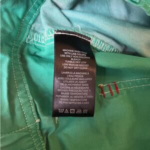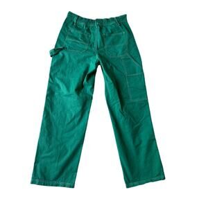 Kelly / seafoam green cargo pants from BDG Urban Outfitters. Women's size 2, made from 100% cotton. These pants are high rise, wide leg, and feature white contrast stitching and a hammer loop. Perfect for cool casual streetwear, St. Patrick's Day, utility, and gorpcore styling. Ideal for transitional seasons like fall and spring. Excellent pre-owned condition.