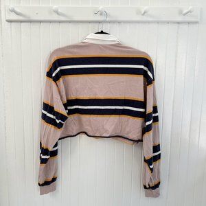 BDG Urban Outfitters Long Sleeve Striped Cropped Collared Top
