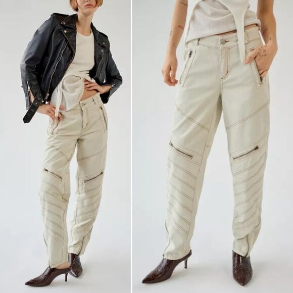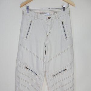 BDG Urban Outfitters Low Rise Tapered Moto Zipper JEANS Size 28 Ivory Denim NEW