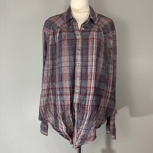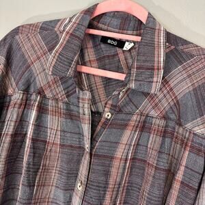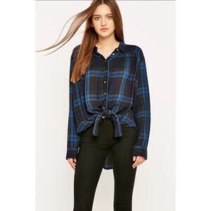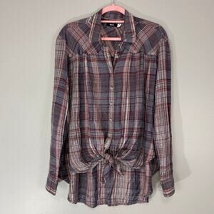 BDG Urban Outfitters Melanie Oversized Plaid Button Down Tie Front Top Sz M