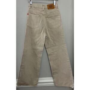 BDG Urban Outfitters Minimalist Funky High & Wide A-Line Leg Beige Denim 26. These super cute and trendy jeans feature a high rise and a baggy wide straight leg. They button and zip to close, with belt loops and open pockets on the front and back! Stiff structured tan denim. They have a brand patch on the back right hip. They have a khaki tan wash. They have a retro old school skater style! Pairs great with everything from crop tops, graphic tees, and sweaters - very versatile! Great addition to any wardrobe, flattering and super fun to style! High quality! Excellent used condition, no flaws noted. See photos for measurements. Please don't hesitate to ask any further questions. Smoke free pet friendly home. Check out my other listings for a bundle deal!