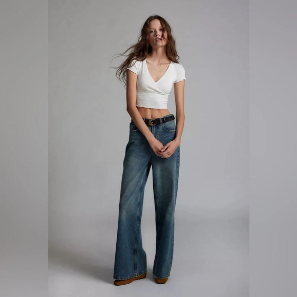 BDG Urban Outfitters NWOT Madi Ribbed Surplice Short Sleeve Tee see flaw** XL